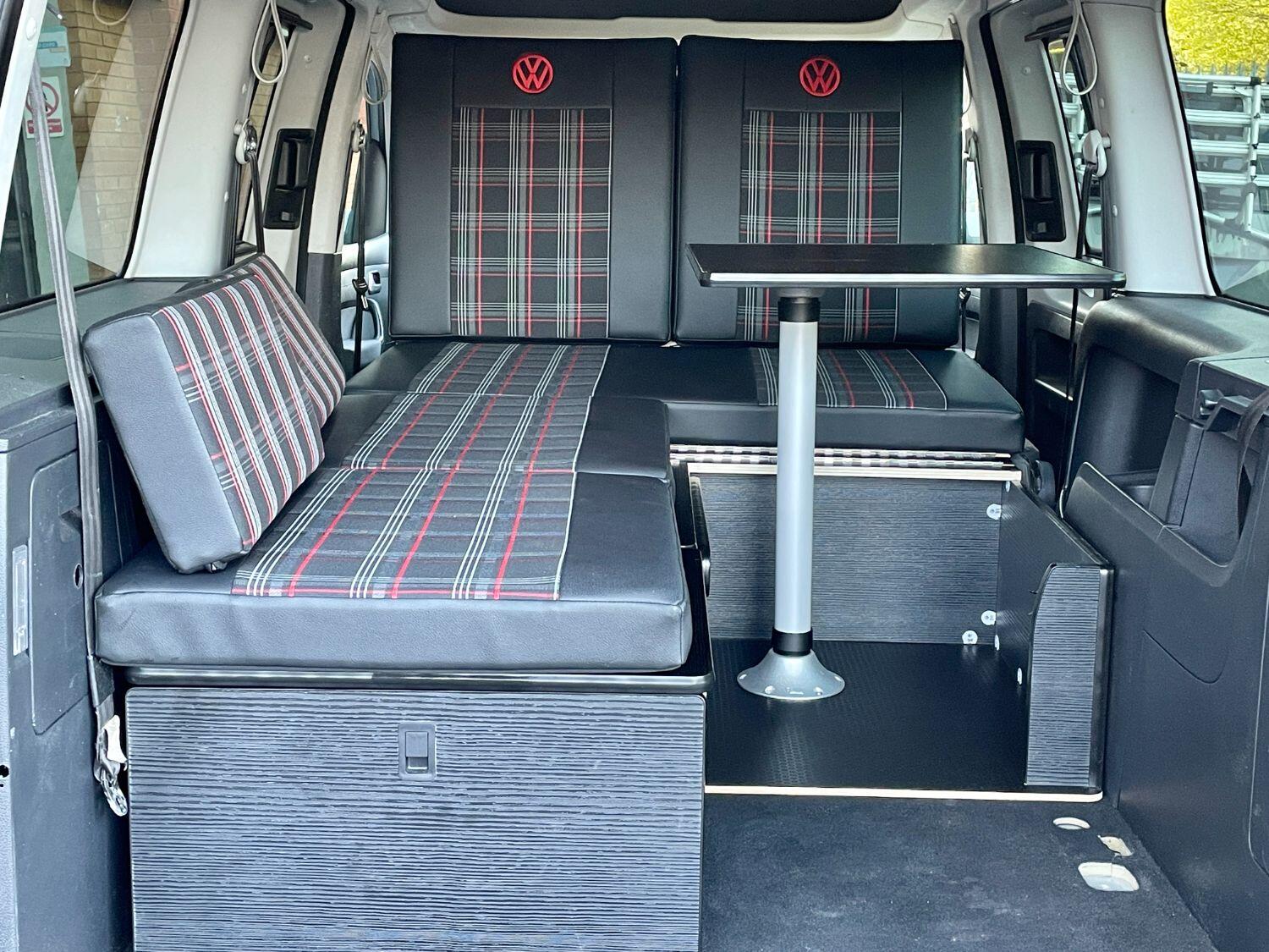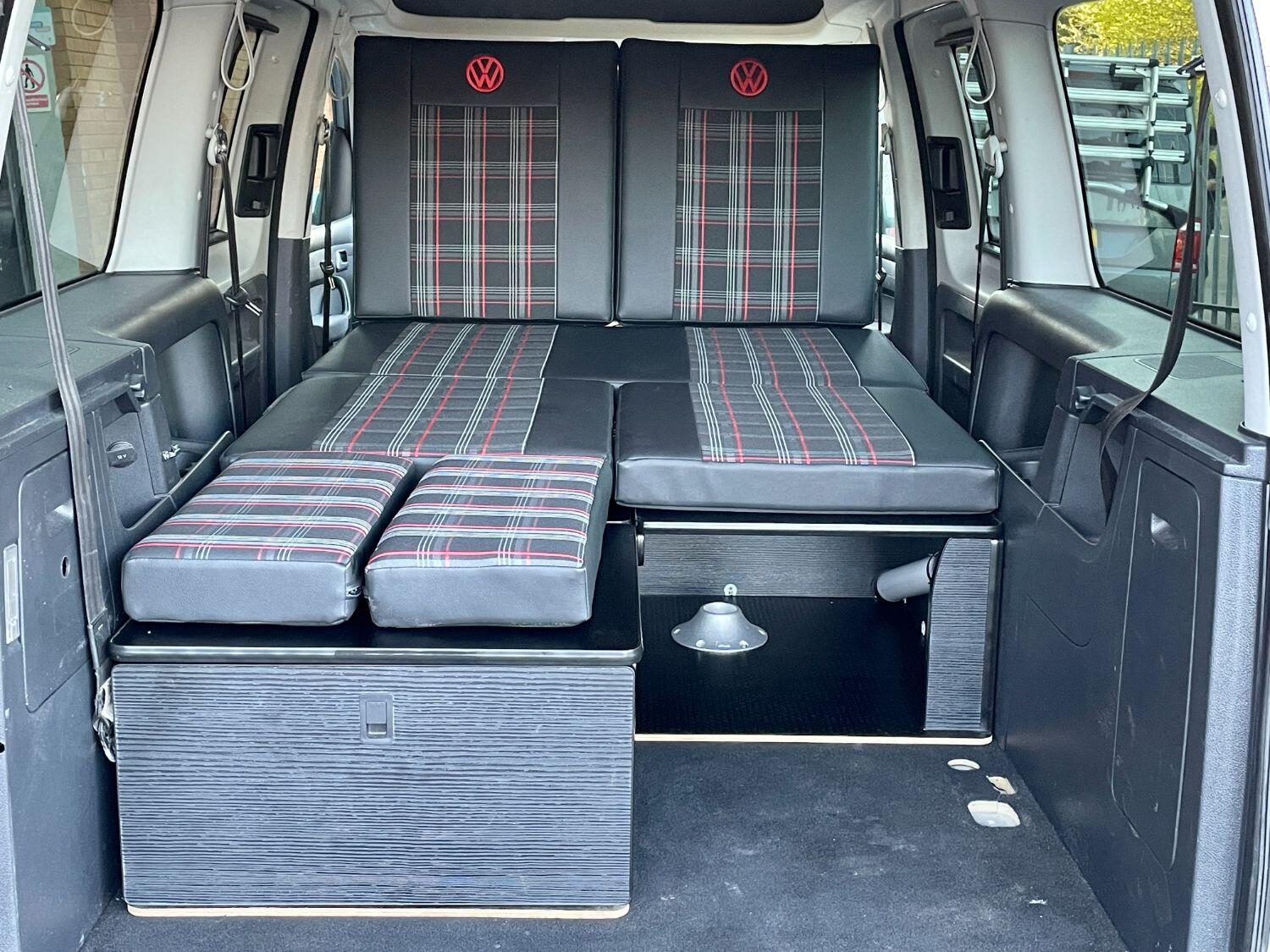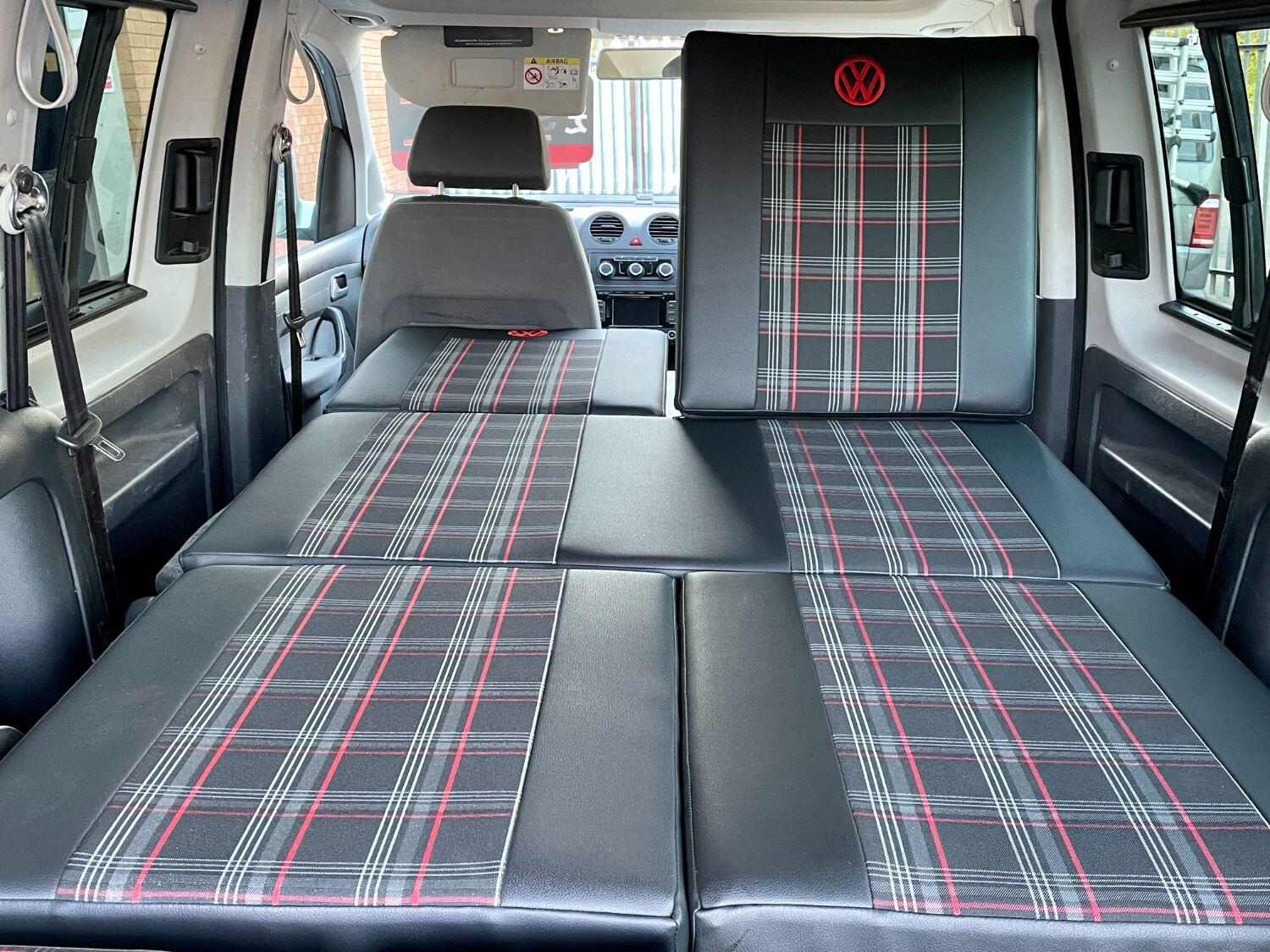 +++ WE HAVE A SELECTION OF VW CADDY, CITROEN BERLINGO AND PEUGEOT PARTNER MICRO CAMPERS AVAILABLE +++ THIS PARTICULAR CADDY HAS NOT ONLY UNDERGONE OUR USUAL INTERNAL CAMPER CONVERSION, BUT HAS ALSO BEEN GIVEN AN EXTERIOR SPORTS KIT UPGRADE +++ BRAND NEW 19" WOLFRACE GTR BLACK EDITION ALLOY WHEELS AND TYRES HAVE BEEN ADDED AND THE VEHICLE HAS BEEN LOWERED USING AN EIBACH 60MM LOWERING KIT, AND FINISHED OFF WITH BLACK TRAPEZOID SIDE BARS, A FRONT BUMPER SPLITTER AND REAR TAILGATE SPOILER +++ IN ADDITION THE INTERIOR CUSHIONS HAVE BEEN TRIMMED IN 'VW TARTAN'/BLACK VINYL WITH VW LOGO STITCHING +++ COMES WITH A FULL SERVICE HISTORY, 2 KEYS, UP TO DATE SERVICE, NEW MOT AND A COMPREHENSIVE PARTS AND LABOUR NATIONAL COVERAGE WARRANTY +++ THESE BRILLIANT MULTI PURPOSE VEHICLES CAN BE USED AS A HANDY 5 SEAT CAR WITH MASSIVE BOOT AND REMOVABLE BACK SEATS, OR FIT THE INCLUDED CAMPING POD THAT SIMPLY SLIDES INTO THE REAR BOOT SPACE TO INSTANTLY CONVERT INTO A MICRO CAMPER WITH A SEATING AND COOKING AREA THAT TRANSFORMS INTO A DOUBLE BED IN LESS THAN A MINUTE +++ ALL COME SUPPLIED FREE OF CHARGE WITH A 2 BURNER OUTWELL GAS STOVE, 240V/12V ELECTRIC COOLBOX, 8L COLLAPSIBLE WATER STORAGE, MAINS HOOK UP FOR CAMPSITE MAINS ELECTRICITY, THERMAL BLACKOUT BLINDS FOR ALL 8 WINDOWS, 2 CAMP CHAIRS, RECHARGEABLE LED LANTERN, KETTLE AND CUTLERY +++ CALL NOW FOR MORE INFORMATION ON 01562 268061 OR 07921 464505 ++